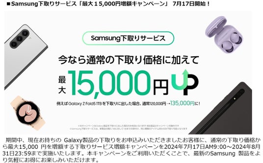 「Samsungオンラインショップ 下取りサービス増額キャンペーン」詳細は下記ページをご確認ください。