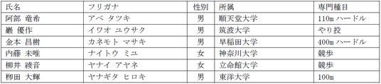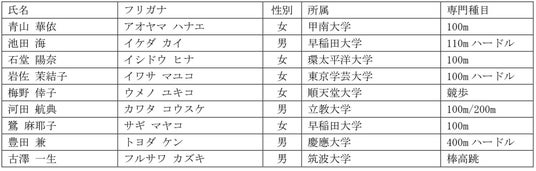 このプログラムを通じ、トップアスリートとしての競技力向上はもちろんのこと、競技以外のステージでも活躍する人材を輩出し、陸上から生まれるリーダーの方々が、これからのスポーツ界や社会をより輝くものにしていただくことを目指しており、この目的に対し賛同し、強い参加意欲のある競技者を募集いたします。