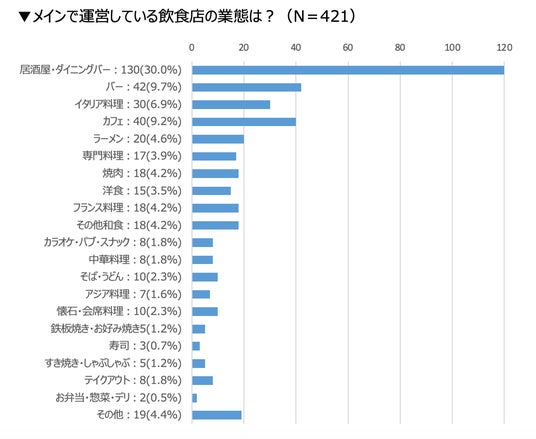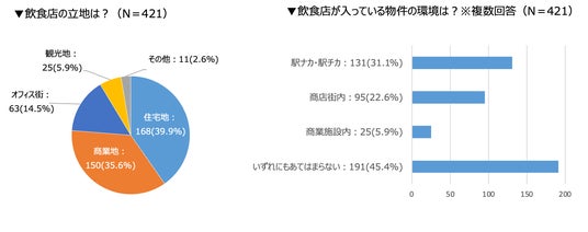 本調査にご協力いただいた回答者のうち69.8%が1店舗のみを運営しております。また、回答者のうち東京にある飲食店の割合は50.4%(首都圏の飲食店の割合は66.4%)となっており、こうした背景が結果に影響していると推測されます。
