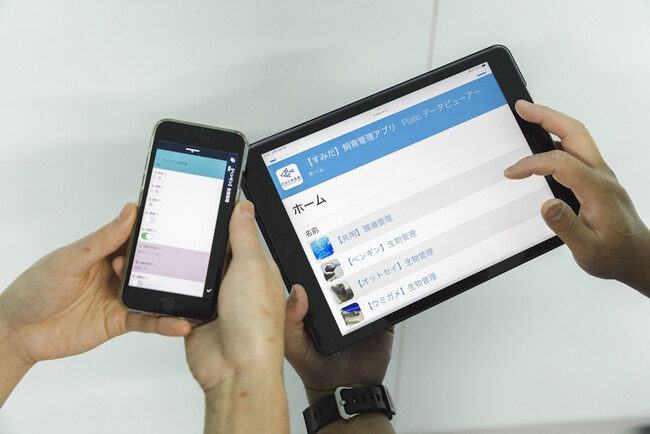 2012年の開業当時より、チケット販売管理システムの導入・保守を行っていたパナソニックISは、今回のご相談を受けて「紙とPCからスマートフォン・タブレットへの置き換え」をご提案。アステリア株式会社のモバイルアプリ作成ツール「Platio」をベースに飼育管理アプリを構築し、2022年11月よりトライアル利用がスタートしました。