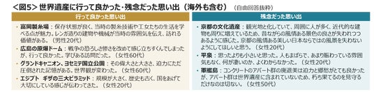 行って良かった世界遺産としては、当時の雰囲気が伝わる富岡製糸場や、戦争の恐ろしさを感じることができた原爆ドームなどがあげられた。<図5>