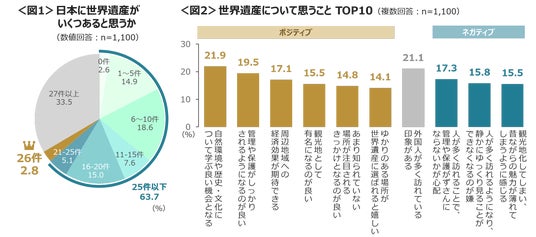 日本に世界遺産がいくつあるか件数で確認したところ、正解である26件と答えた人は2.8%。