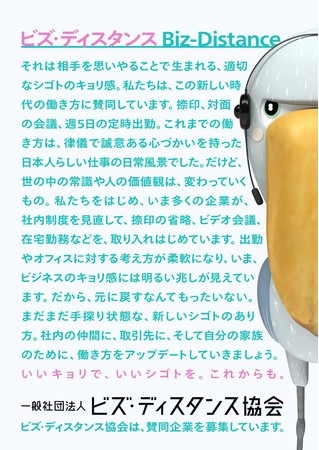 一般社団法人ビズ・ディスタンス協会(以下、ビズ・ディスタンス協会)は、今後の活動方針の発表と併せて新たに賛同企業の募集を開始しました。また、3月9日付でACALL株式会社が新たな理事企業として参加いたしました。