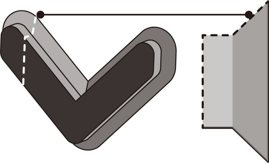 地面との接地面の意匠をV字形状にすることで、滑りのもととなる地面を踏んだ際に付いた液体を、溝に沿って排水しやすくしています。