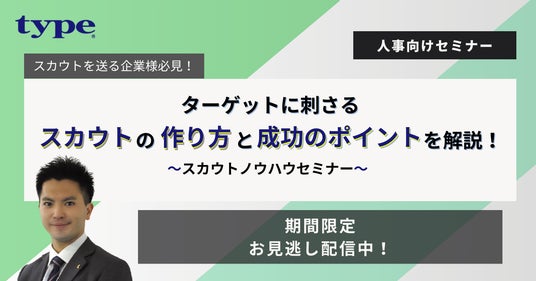 【スカウト送信の極意とは?】ターゲットに刺さるスカウトの作り方と成功のポイントを解説https://info.type.jp/webinar-guide/archive-0055/