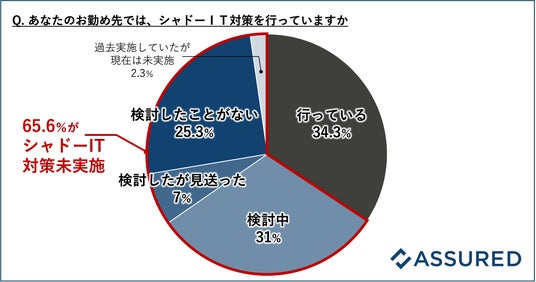 Visionalグループの株式会社アシュアード(所在地:東京都渋谷区/代表取締役社長:大森 厚志)が運営するセキュリティ評価プラットフォーム「Assured(アシュアード)」(https://assured.jp/)は、従業員が会社の許可なく利用しているシャドーITへの対策実態について、従業員数1,000名以上の大手企業に所属する情報システム部門300人に調査した結果を発表します。