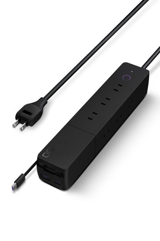 分離可能なコードリール内蔵充電器と、最大7口の雷サージ対応電源タップを組み合わせた製品。