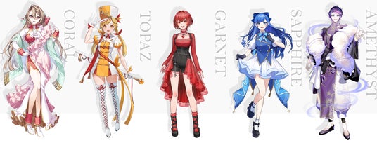 ラビスタでは、現在100名以上のVライバーが新感覚VTuberアプリ「IRIAM(イリアム)」やXを中心に活動しています。サファイア、ダイアモンド、エメラルド、ガーネットなど、今回募集するキャラクターは宝石にちなんだ9体です。
