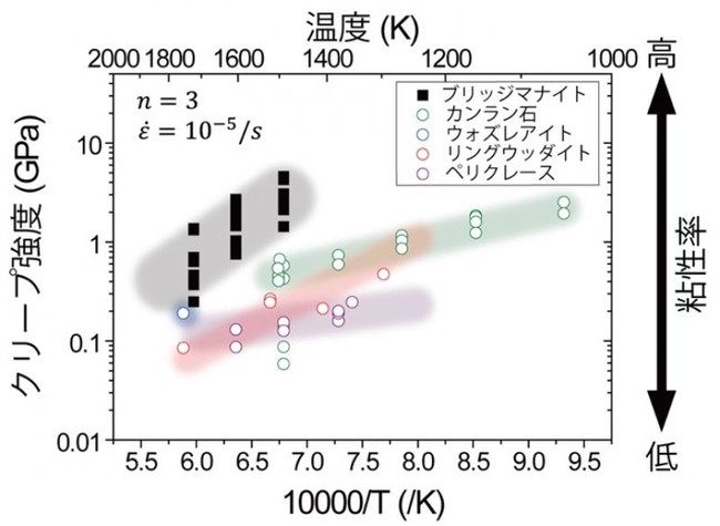これにより、これまで地球物理学的観測により報告されていた下部マントルの高粘性率はブリッジマナイトの粘性率でよく説明できることが明らかになりました。