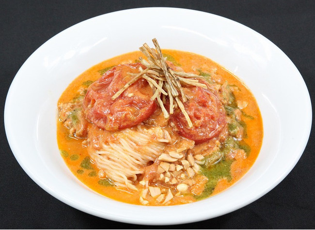 特製のトマトソースとセミドライトマトのさわやかな酸味が、濃厚な豆乳入りのゴマダレとベストマッチ。四川花椒のほどよい痺れが食欲を刺激します。