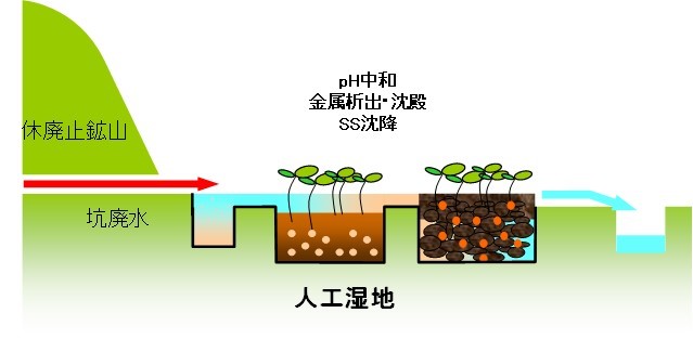 日本各地には、かつて金や銀、銅などを含む鉱石を採掘していた鉱山が多数存在し、採掘が終了した現在でも、旧坑道などから有害金属を含む坑廃水が流出する場合があり、適切に処理されていますが、半永久的に続くコストの削減が大きな課題となっています。