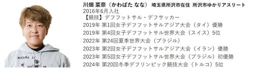ケイアイスター不動産株式会社(本社/埼玉県本庄市、代表取締役社長/塙 圭二、以下「当社」)のケイアイチャレンジドアスリートチームに所属する川畑 菜奈(かわばた なな)選手は、2025年5月30日(金)に埼玉県所沢市ゆかりのアスリートとして小野塚 勝俊(おのづか まさとし)市長を表敬訪問しました。