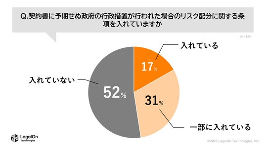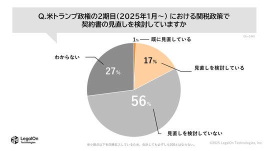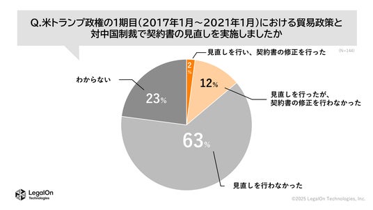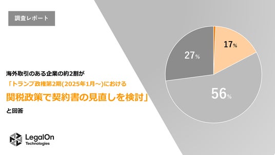 株式会社LegalOn Technologies(本社:東京都渋谷区 代表取締役 執行役員・CEO:角田 望、以下LegalOn Technologies)は、海外企業との契約・取引を実施している企業担当者144名に「米国の関税措置に対する契約書の見直しに関するアンケート」を実施しました。