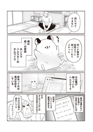 職業・悪役レスラーの金剛寺は、その屈強な体とコワモテから試合でもプライベートでも恐れられている。しかし彼の家には溺愛するキンクマハムスターのオムライスが待っていて……!? 悪役レスラーがハムスターに癒されるムキふわコメディ開幕!!