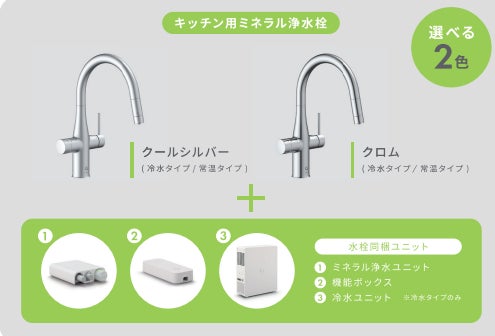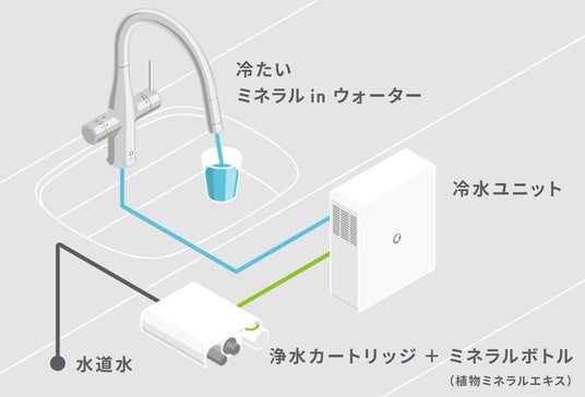 カンタンな工事で「Greentap」の水栓本体と専用ユニットを設置すれば、おうちの蛇口から、冷たくておいしい※ミネラル in ウォーターをお楽しみいただけます。