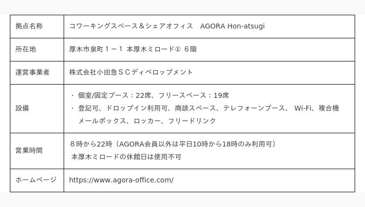 【参考3】起業家創出拠点「AGORA Hon-atsugi」の概要