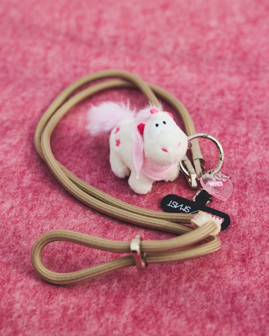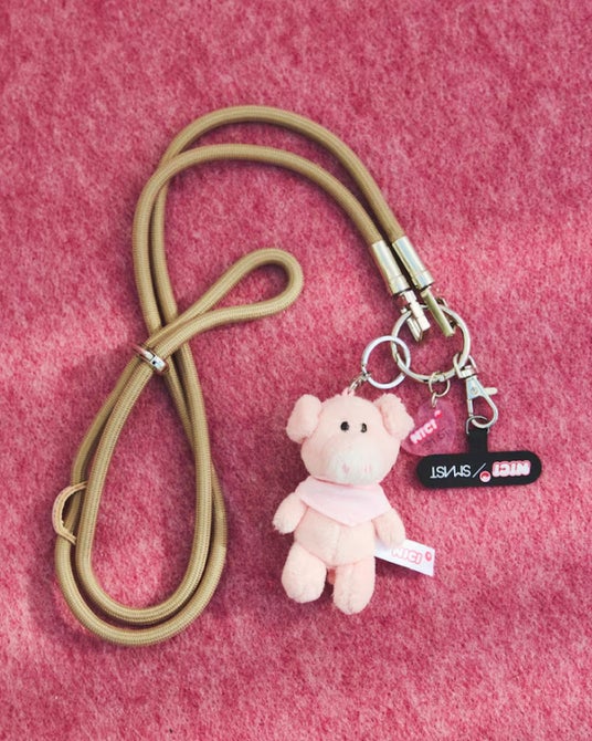 NICI x SMASTのオリジナルハートチャーム、アタッチメント付きで、ストラップにチャームとしてぶら下げるのももちろん、バッグにチャームとして付けるのもおすすめです。NICIのぬいぐるみに巻いているバンダナは、首に巻いたり、頭に巻いたり、様々にアレンジしても楽しめます。