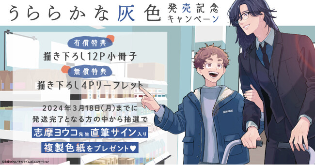 ホーリンラブブックスでは、志摩ヨウコ先生最新コミックス『うららかな灰色』 発売を記念して豪華キャンペーンを実施いたします!
