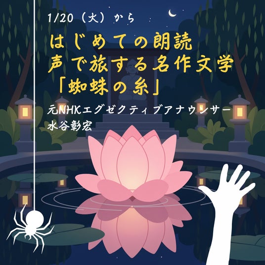 芥川龍之介の名作『蜘蛛の糸』を声に出して読み、文学の情景や登場人物の心情を体感する初心者向け朗読講座です。