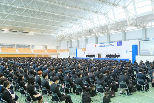 国立大学法人岡山大学(本部:岡山市北区津島中、学長:槇野博史)は2022年4月2日(土)、「令和4年度岡山大学入学式及び大学院入学式」を岡山県総合グラウンド 体育館(ジップアリーナ岡山)(岡山市北区)で挙行しました。