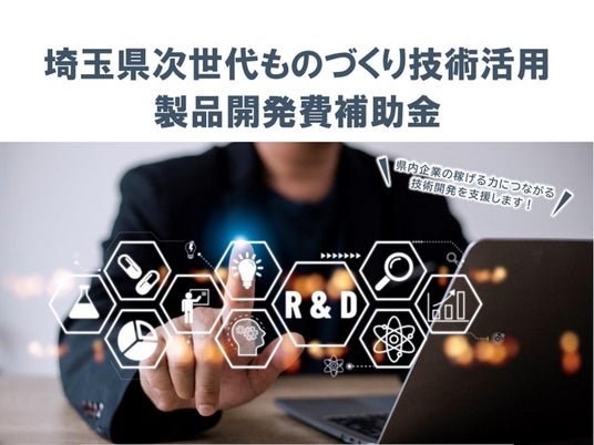 埼玉県では、県内の産業振興を図るため、技術イノベーションを創出する取組を実施しています。その一環として、県内中小企業が取り組むデジタル、バイオ、マテリアル、カーボンニュートラル分野における技術や製品の開発経費に対して助成を行います。