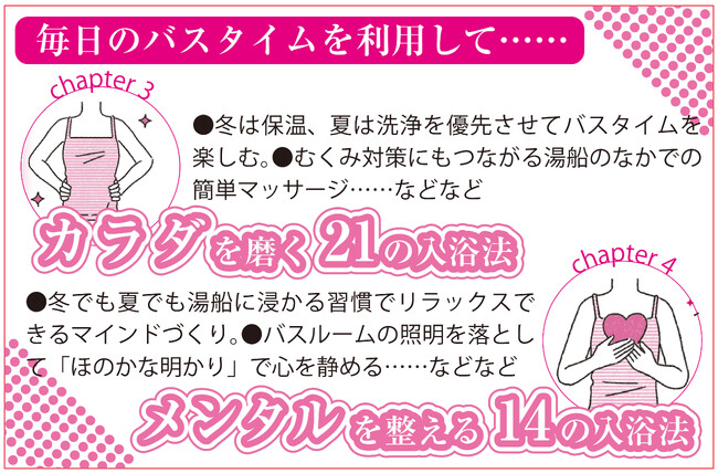 本書では、誰でも今夜から簡単にためすことができる、バスタイムでキレイになる方法やリラックスするコツをご紹介しています。
