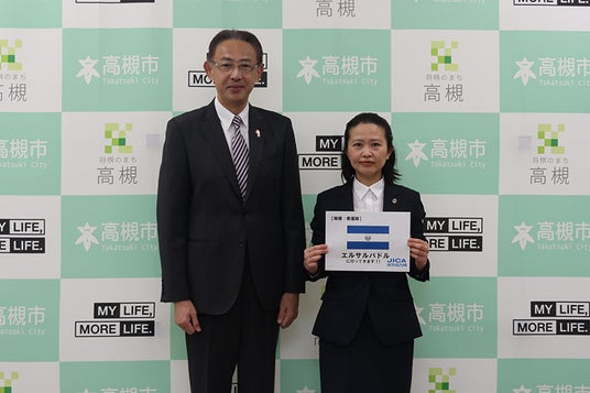 令和7年4月11日(金曜日)、高槻市在住で看護学校の教員を務める田中真理さんが市役所を訪問し、JICA(独立行政法人国際協力機構)の海外協力隊として、令和7年4月から令和9年4月までエルサルバドルに派遣され、現地の看護学生への指導や大学内での教育支援に従事することを濱田剛史市長に報告しました。