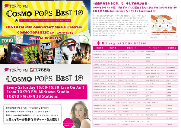 ■『TOKYO FM開局45周年記念スペシャル番組 コスモ ポップス ベスト10 1970-2015』番組概要