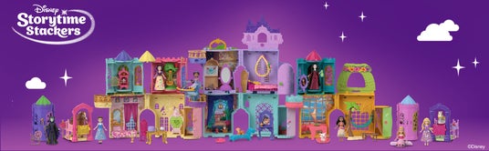 “かさねるおしろシリーズ!”は、色々なプリンセスのおしろをかさねることで想像力を広げ、自分だけのおしろや、物語を作って遊ぶことができます。