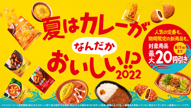 株式会社ファミリーマート(本社:東京都港区、代表取締役社長:細見研介)は、昨年から取り組んでいる5つのキーワードのうち「もっと美味しく」、「たのしいおトク」の一環として、2022年7月19日(火)から全国のファミリーマート約16,600店で、昨年に引き続き「夏はカレーがなんだかおいしい!?2022」を開催いたします。