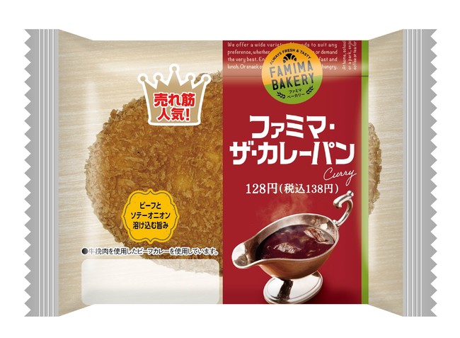 【内容】ビーフとソテーオニオンの旨みがしっかり感じられるコクのあるこだわりの欧風カレーフィリングを、もっちりとしたドーナツ生地でつつみました。ファミマで人気のカレーパンです。