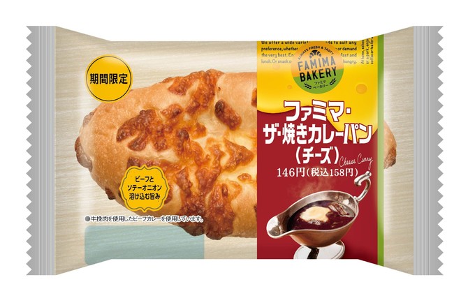 【内容】ファミマ・ザ・カレーパンのカレーフィリングを使用し、高加水生地でソフトな食感に仕上げた焼きカレーパン。モッツァレラチーズをトッピングし、カレーフィリングとチーズソースを中に絞っています。