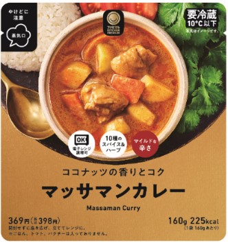 【内容】ココナッツミルクとカシューナッツペーストのコクを感じられる味わいに仕上げたマッサマンカレーです。レモングラスやナンプラー、タマリンドなどを使用しています。
