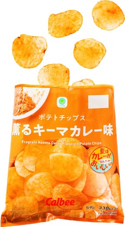 【内容】インド料理で人気が高いキーマカレーの味を再現しました。お肉の旨みをしっかり感じられるポテトチップス。オニオンや7種類のスパイスの風味が特長です。