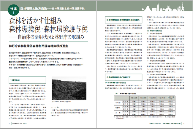 本特集では、我が国の森林政策の現状とその課題に併せて、森林環境譲与税(令和元年度から譲与)、森林環境税(令和6年度から課税)の取組状況や役割・仕組み等を紹介いたします。