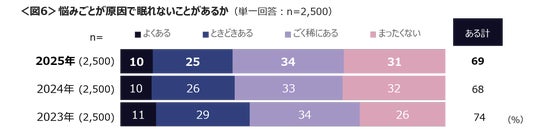 悩みごとが原因で眠れない人の割合は69%と昨年と大きな変わりはない。<図6>