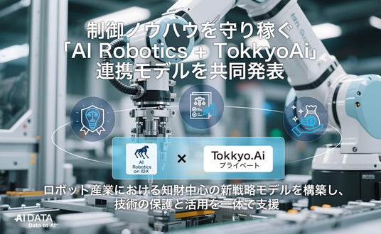 企業データとAIの利活用カンパニー、AIデータ株式会社(本社:東京都港区、代表取締役社長 佐々木隆仁、以下AIデータ社)と、リーガルテック株式会社(本社:東京都港区、代表取締役:平井 智之、以下リーガルテック社)は、生成AIによるナレッジ統合基盤「AI Robotics on IDX」と、発明・特許・知財プラットフォーム「Tokkyo.Ai」を連携させたロボット産業向け知財戦略モデルを共同で発表する。
