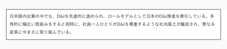 このたび当社は、日本のダイバーシティ&インクルージョンをリードする企業を表彰する『D&I Award 2023』において「アドバンス認定」が授与されました。「未来を自分で選択できる社会をつくる」というビジョンのもと、多種多様な生き方・働き方を体現するメンバーが働く当社は、今後も、時間と場所を超え企業と働き手を結び、社会課題の解決に取り組んでまいります。