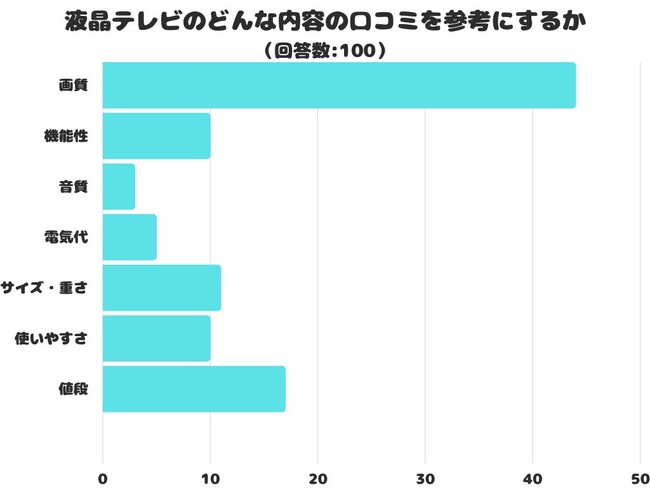 液晶テレビのどんな内容の口コミを参考にするかをアンケートにて調査したところ、1位は「画質」でした。