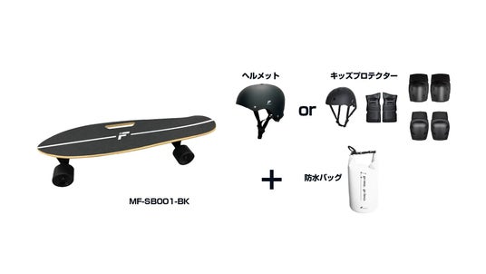 7,000円相当の選べるヘルメットorキッズプロテクターとMEISTER.Fオリジナル防水バッグがプレゼントなります。なお、プレゼントとなるヘルメットのカラーはブラックとなります。