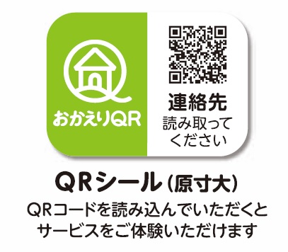 「おかえり QR」は、ご高齢の方やお子様が迷子になられた際や、災害時の安否確認が必要となった際などに、発見者が現在の状況や発見場所などを即時にご家族に伝え、安心をお届けするサービスです。