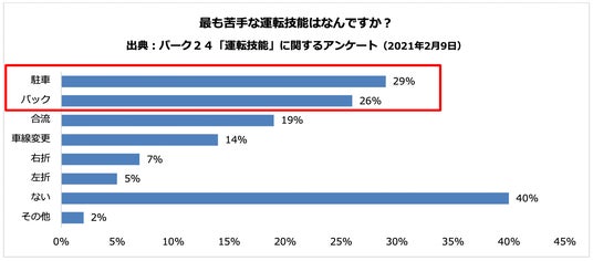 ※出典:2021年2月9日当社発表プレスリリース『自身の運転を「上手い」と認識する人は約3割 得意・苦手な運転技能はともに「駐車」がトップ』
