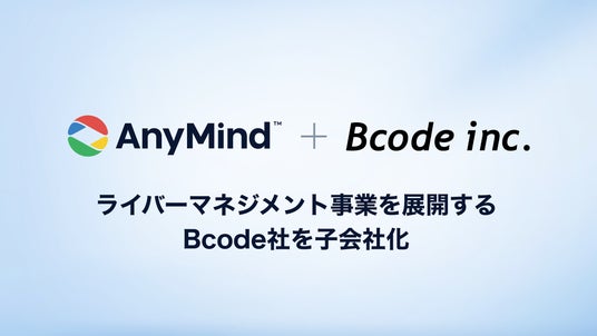 AnyMind Group株式会社(読み:エニーマインドグループ、代表取締役CEO:十河 宏輔、以下「当社」) は、ライブ配信者(Liver)のマネジメント事業を展開する株式会社Bcode(読み:ビーコード、代表取締役:漣 優起、以下「Bcode社」)の全株式を取得し、子会社化したことをお知らせします。