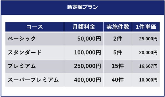 この度、お客様の多様なご利用ニーズにより柔軟にお応えするため、従来の定額プランに替えて、月々のインタビュー件数に応じてお得にご利用いただける「新定額プラン」を導入いたしました。