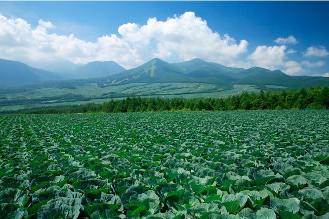 群馬県嬬恋村の名産品として有名な嬬恋高原キャベツは、夏秋キャベツとして全国一の出荷量を誇る、標高700m以上の高冷地で育てられたキャベツです。高冷地である嬬恋村は、夏は涼しく6月~9月の平均気温はキャベツの生育適温と同じ15~20℃となります。昼夜の寒暖差と高原特有の朝露、また栽培に適した土壌も素材の美味しさに繋がります。