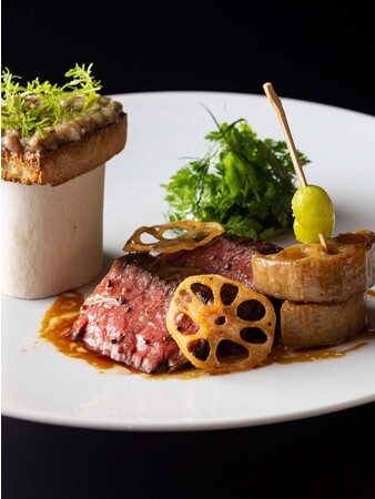 和牛本来の柔らかさの中にしっかりとした旨味があるバヴェットを、デギュスタシオンコースならではのスタイルに仕上げました。牛の“モワル”を添え、様々な和牛の味わいを楽しんでいただけます。期間限定のフルコースをぜひご賞味ください。
