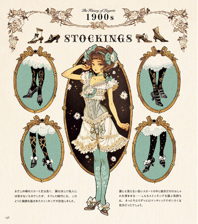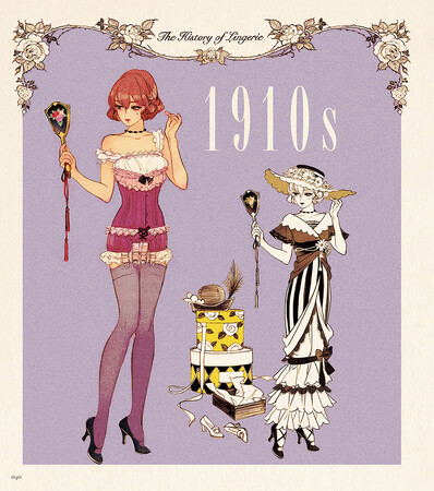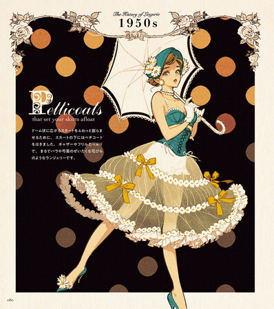 マツオヒロミさんは2023年に「日本漫画家協会賞萬画部門大賞」を受賞されました。その受賞後はじめての単行本刊行となる本書は、描き下ろしショートコミックも複数収録しています。また、イラスト作品のページには、そのランジェリーが流行した社会背景の解説エッセイも豊富に掲載されており、ファッションやジェンダーに関する軌跡なども楽しく学ぶことができます。1900年代のコルセットやストッキングとそれらが支えたアウトウェア、女性にも動きやすさを尊重するデザイン・素材が登場した20世紀前半、ミニスカートの流行で下着も軽量化した60年代…、膨大な資料調査に基づくイラスト作品群は、どの時代の女の子たちもすべてが最高にかわいい魅力であふれています。