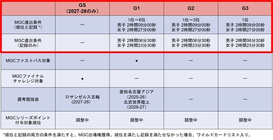 また、MGCシリーズの加盟大会において、順位とタイムをクリアすると「ロサンゼルス 2028オリンピック競技大会マラソン日本代表選手選考競技会」として 2027 年に開催するMGCへの出場権を得ることができます。
