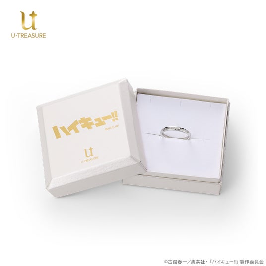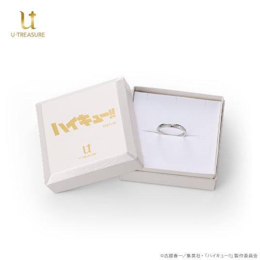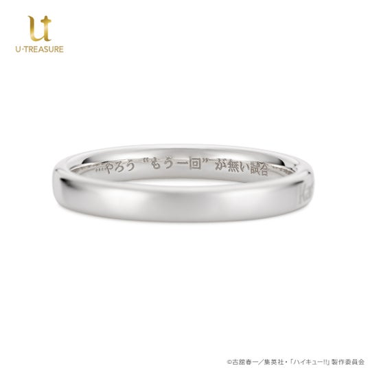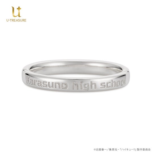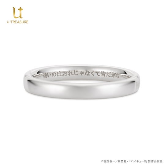 『烏野高校(Karasuno high school)』の校名をデザインしたリングの内側に、印象的なエピソードがよみがえる各キャラクターの名言を刻みました。