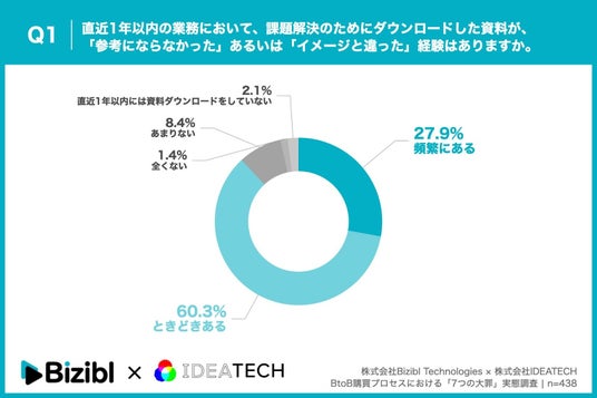 資料(ホワイトペーパー等)に「がっかり」した経験がある:88.2%(「頻繁にある」27.9%+「ときどきある」60.3%)